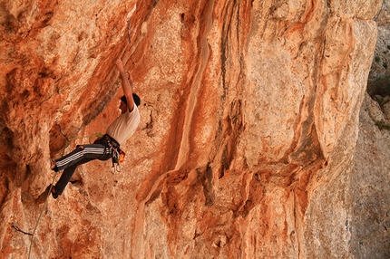 Era il 17 Marzo 2013 per l’esattezza, e di quella giornata è praticamente impossibile dimenticarne i dettagli che l’hanno resa unica. Dapprima delusi per aver trovato ben poche rocce interessanti, ad un certo punto, dall’ultimo lembo di un esposto promontorio su cui eravamo affacciati, guardando verso il mare ecco che come per magia un grande antro rossastro si apriva alla nostra vista. Presi i doverosi punti di riferimento dopo aver urlato di contentezza per almeno mezzora, ci incamminammo così di gran corsa per trovare la giusta via che ci avrebbe condotto, a quella che speravamo essere la nostra futura creazione.