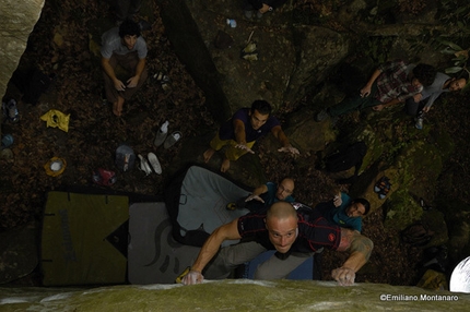 Quasi la metà degli iscritti è rimasta in zona per passare i 4 giorni di ponte per continuare a spellarsi le dita su questi magnifici blocchi di arenaria provando blocchi storici, (da segnalare la veloce ripetizioni di Riccardo Capresecca del famoso blocco Ole' 7C di ingresso alla zona aperto anni or sono dal Mauro Calibani) o tentando per l'ennesima volta a ribaltare su Omo de Panza anche ormai fuori gara.