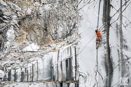 "La meraviglia e l'orrore di una cava. La bellezza del marmo resa visibile solo attraverso l’opera di distruzione operata dall’uomo. L’arrampicata che diventa uno strumento di conoscenza attraverso il gesto.” Ecco in estrema sintesi Carie, il film-documentario e progetto crossmediale di Marzio Nardi, Federico Ravassard e Achille Mauri nato dopo aver visitato, esplorato ed arrampicato nelle cave di marmo attorno a Carrara nelle Alpi Apuane.