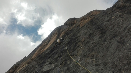 Dopo l’apertura di Occhi d’acqua alla Torre del Formenton nell’autunno del 2015, avevo rivolto le mie attenzioni ad altri luoghi e ad altri progetti. La conca del Fuciade è però rimasta sempre nella mia mente come la possibilità di continuare a valorizzarla sotto il profilo dell’arrampicata.