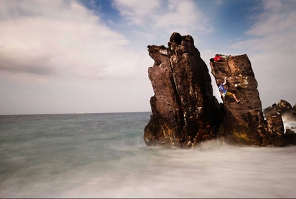 Un po' come quando girate per un bosco e vi si para davanti un grande sasso perfetto la reazione è di eccitazione. Dopo alcune telefonate ad alcuni local per sapere se fosse stato scalato, mi sento dire che tutti lo conoscono ma alla fine nessuno lo ha mai vissuto, quel piccolo mostro marino.