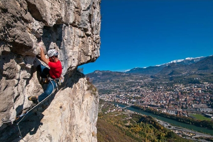 A Marzo scalpitavamo ed aprimmo le danze e già per fine aprile la via era aperta e liberata. Il risultato è un itinerario interessante, con buona qualità di roccia, che ha superando le nostre migliori aspettative. Sempre strapiombante ed atletica, con il valore aggiunto di galleggiare sopra la città di Trento. Cosa che ho apprezzato moltissimo, soffermandomi in sosta ad osservare la mia città, cercando e frugando con gli occhi, realtà e ricordi.