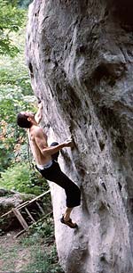 Bella prestazione di Luca Parisse che, Sabato 7 settembre scorso, ha ripetuto a Meschia Vecchia: "Pelè " lancione di 8a, liberato da Stefano Finocchi e ripetuto finora solo da Mauro Calibani. Luca guarito dall'infortunio alla mano, subito agli inizi di Agosto, ha ripreso i suoi viaggi a Meschia insieme al giovane Andrea Di Rienzo, e dopo pochi tentativi finalmente è riuscito nel grande lancio. Sabato, forse, le condizioni climatiche - che con l'approssimarsi dell'inverno tendono sempre più a migliorare - hanno favorito la grande prestazione. Complimenti a Luca che si dimostra un vero appassionato e tenace boulderista. | ||||||