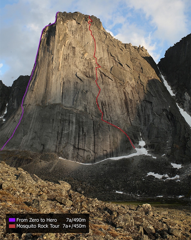 Bilibino 2015: The General: Mosquito Rock Tour (7a+ / 450m), prima salita Iker & Eneko Pou, 14/07/2015. From Zero to Hero (7a / 490m) prima salita Hansjörg Auer, Jacopo Larcher, Siebe Vanhee, 21,22, 24/07/2015