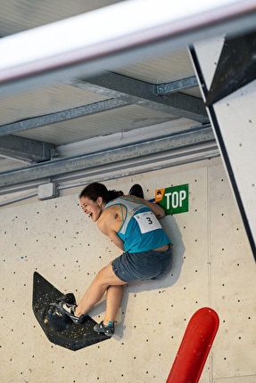 Giulia Medici effettua 3 top spettacolari, con l’energia e la tecnica che la contraddistinguono, ma un blocco non risolto frena la sua scalata alla vetta del podio. Merita però a pieno titolo la sua medaglia di bronzo. Quarto posto per Laura Rogora, quinto per Caterina Dal Zotto e sesto per Stella Giacani .