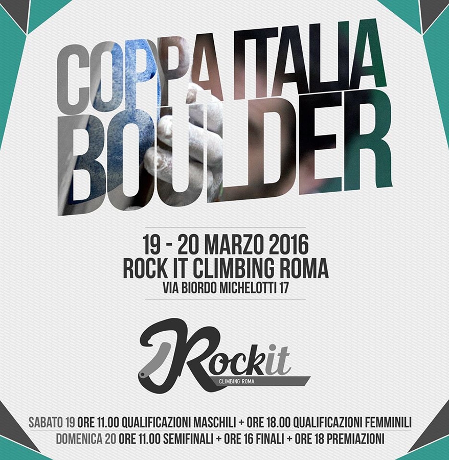 Roma ospita la prima tappa della Coppa Italia 2016: l'appuntamento è fissato per sabato 19 e domenica 20 marzo al Rock it Climbing Roma, palestra per l'arrampicata sportiva inaugurata il 18 gennaio e che si appresta a vivere uno dei momenti più attesi della stagione. In scena i migliori atleti italiani della disciplina nella specialità boulder, pronti a darsi battaglia lungo i cinquecento metri quadrati di pareti progettate ad arte.