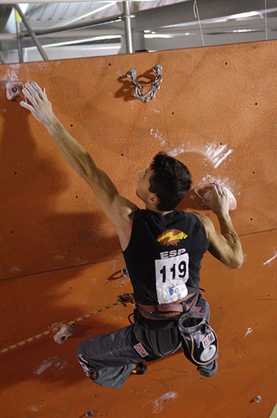 Ora solo il basco Patxi Usobiaga può sbrogliare il rebus del top. Patxi, ovviamente, va su senza apparenti problemi. Si ferma a metà traversata per chiedere l’incitamento del pubblico: è un boato. Poi parte alla caccia del connazionale Puigblanque, arriva sul punto toccato da Mrazek, Lachat e Verhoeven, li supera: solo di un soffio però… e Puigblanque è il nuovo Campione del Mondo Lead (proprio lo stesso titolo che gli era “sfuggito” a Monaco!). L’argento è di Usobiaga, per una storica doppietta spagnola. Mentre sul terzo gradino del podio salgono Lachat, Mrázek e Verhoeven.