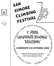 | Sabato 5 e domenica 6 ottobre si svolgerà a Codroipo (UD) il San Simone Climbing Festival, valido come IVa prova del 2° Campionato Regionale Bouldering del Friuli Venezia-Giulia. La gara si svolgerà con inizio dalle ore 10,00 nella palestra di Via Circonvallazione Sud. Domenica la manifestazione proseguirà con un meeting di arrampicata per tutti con il Gruppo rocciatori "Orsi" del CAI Codroipo.