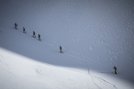 La partenza è stata data alle 8:45, quando i primi raggi di sole avevano iniziato a illuminare le piste della Ski Area di Piancavallo. La traccia di salita ricalcava il percorso della gara Vertical “Mondiale” del 2017. In questa prima fase sono state le squadre formate da Eydallin-Lenzi, Reichegger-Boffelli e da Viret-Equy a prendere il comando delle operazioni. Nella prima parte di salita nessun problema tra i battistrada, ma dopo la prima discesa, salendo verso il Rifugio Semenza, Damiano Lenzi inizia a sentire delle fitte alla schiena e perde metri preziosi dalle due coppie rivali. Eydallin rallenta il ritmo e prova ad aspettare il compagno di squadra, ma è proprio in vista del Rifugio Semenza che Damiano Lenzi alza bandiera bianca e comunica il ritiro. "Combattere contro la fatica - ha racconto in zona arrivo Damiano Lenzi - è un conto, ma quando senti che le gambe si bloccano forse è meglio fermarsi".