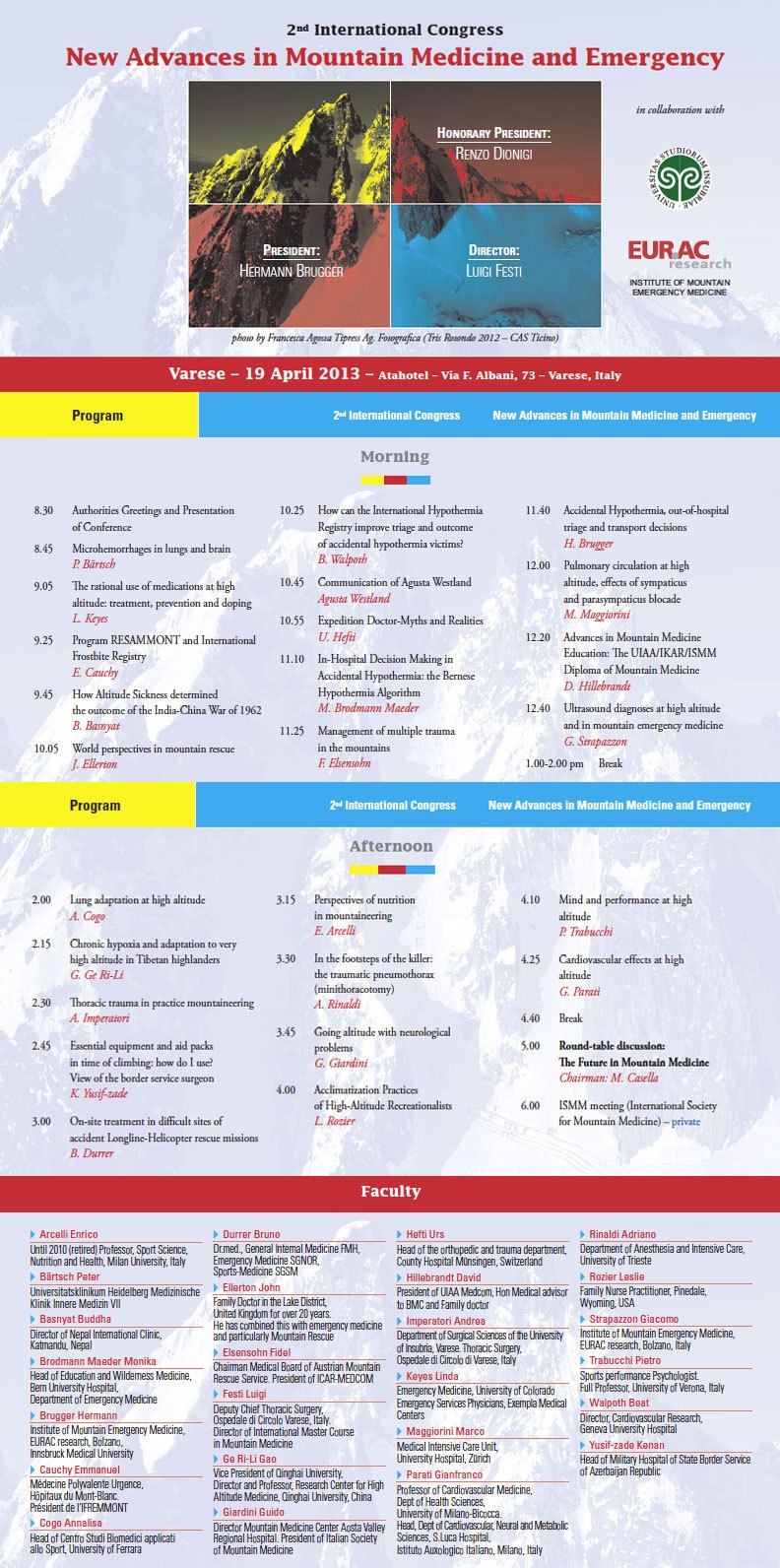 Il 18 - 19 aprile 2013 a Varese si svolgerà la seconda edizione del Congresso Internazionale: New Advances in Mountain Medicine and Emergency, organizzato dall‘Università degli Studi dell’Insubria in collaborazione con l’Institute of Mountain Emergency Medicine.
