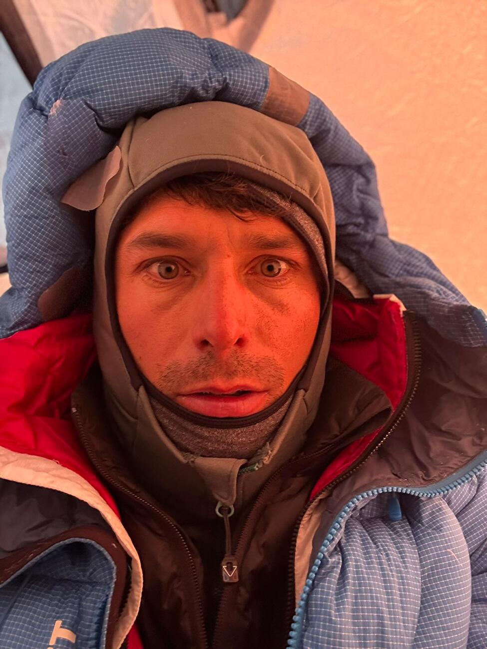 Charles Dubouloz durante il sesto giorno della solitaria invernale di 'Divine Providence' su Grand Pilier d'Angle, Monte Bianco (9-14/12/2025)