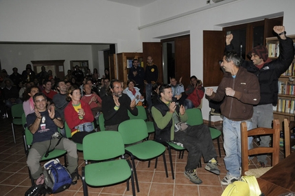 Per quanto riguarda l’arrampicata sabato si è svolta una breve e divertente gara di velocità nell’impressionante e coreografica cava a monte della falesia, gara che ha visto prevalere il giovane sassarese Giorgio Sedda, già ripetitore della via più dura della falesia (L’anima o la mela, 8a+) liberata quest’anno dall’austriaco “malato di Sardegna” Arthur Kubista. La sera di sabato è scivolata via tra i filmati sul Verdon portati da Martina Cufar e Nicholas Potard, ospiti della manifestazione, e quelli forniti dalla E9 e dalla UISP stessa, che ha presentato un interessante documentario sulla storia dell’Aguglia di Goloritzè. Naturalmente non poteva mancare la serata musicale con grigliata in piazza, organizzata dal Comune.