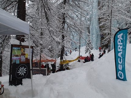 L'idea di un raduno-festa nasce poi due anni dopo; alcune case produttrici di materiale alpinistico (Petzl, Grivel, Scarpa, Montura, Cassin - Camp ed Edelweiss) mettevano a disposizione il materiale utile alla progressione su ghiaccio mentre le Guide Alpine di Mountain Passion fornivano l'assistenza ai neofiti e a tutti coloro che si iscrivevano ad una garetta di velocità che serviva per selezionare i migliori 15 tempi che se la sarebbero giocata poi su un tiro di difficoltà. Quest'anno la formula è stata un po' rivista e una particolare attenzione è stata infatti dedicata alle new entry, principianti che, nonostante tutto questo ghiaccio, hanno dimostrato un vero cuore di fuoco! Qualche giorno prima poi sono stati attrezzati ad hoc due tiri di misto sui quali i ghiacciatori più evoluti si sono prodigati autonomamente in numerosi tentativi... fra i top climber spiccavano i nomi di Jeff Mercier, Anna Torretta, Matteo Giglio e Matteo Rivadossi (purtroppo infortunato) che, come consuetudine, hanno lasciato gli spettatori a naso all'insù, realizzando in libera i due tiri di misto chiodati per l'occasione e aggiudicandosi così la "super finale"... che Jeff ha letteralmente "camminato"!