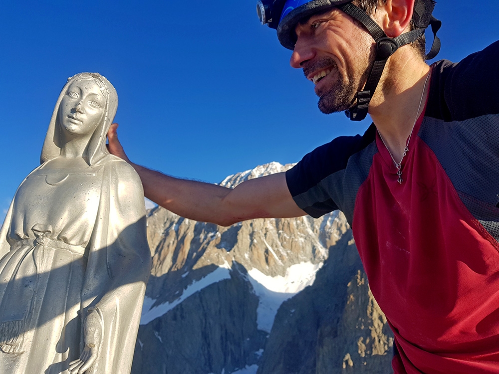 Filip Babicz in vetta alla Aiguille Noire durante la Integralissima di Peuterey