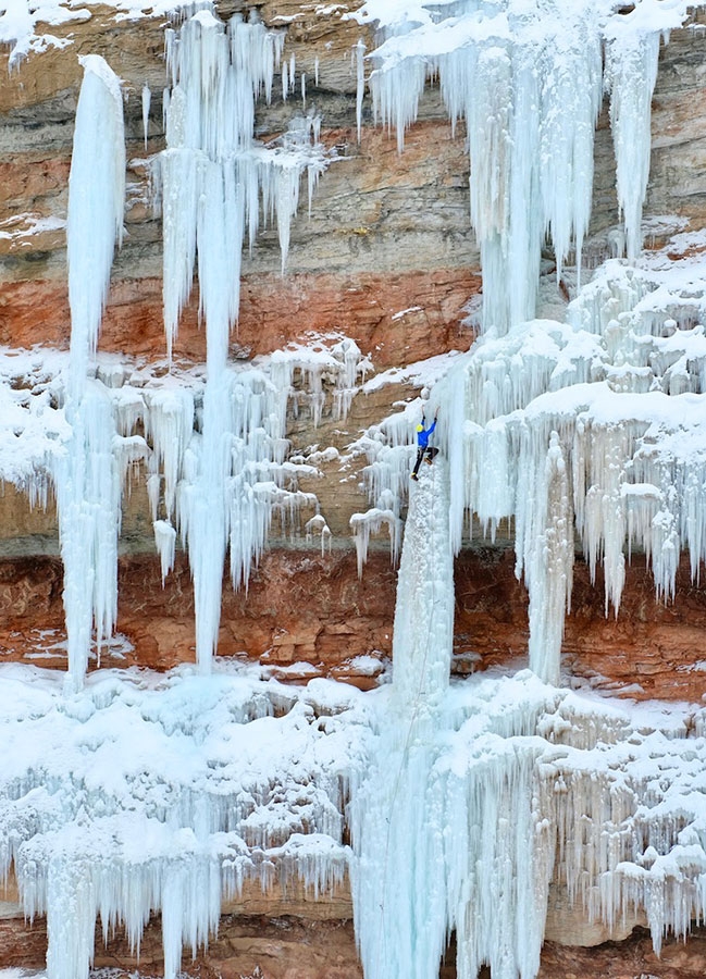 Florian Riegler con sulle cascate di ghiaccio del Bletterbach. 'L’arrampicata su ghiaccio è il mio modo per esprimermi, alla ricerca dei miei limiti e di me stesso!'