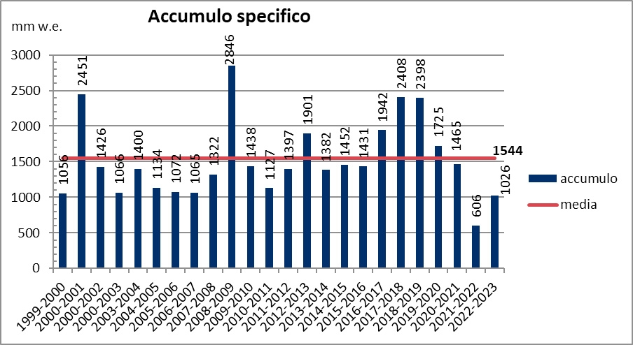 Accumulo specifico della neve sul Ghiacciaio del Grand Etrèt, Parco Nazionale del Gran Paradiso