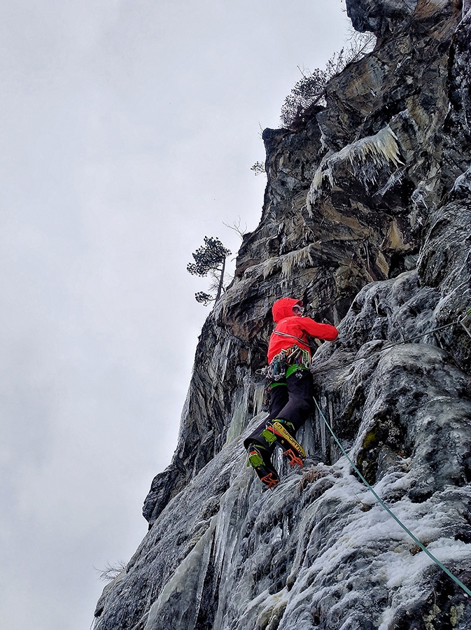 Hansjörg Auer durante la prima salita di Nordstau, Burgsteiner Wand, Ötztal