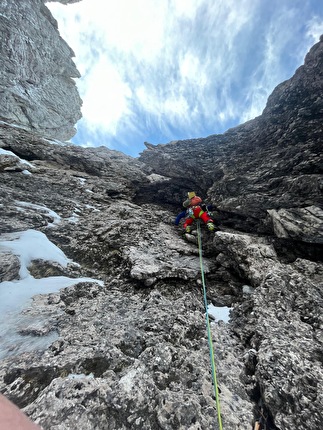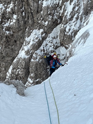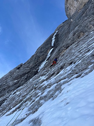 Gietl: No, per me era la prima volta che scalavo qualcosa sull'Agner. Naturalmente ne avevo sentito parlare e letto molto, ma prima non ero mai riuscito a combinare qualcosa. Dopo aver sentito parlare della linea di Nicola e Diego mi era chiaro che la volevo salire anche io, ma non sapevo che la parte bassa non fosse mai stata salita. Ero motivato ancora di più quando ho scoperto che l'intera è una delle vie invernali più lunghe delle Dolomiti!