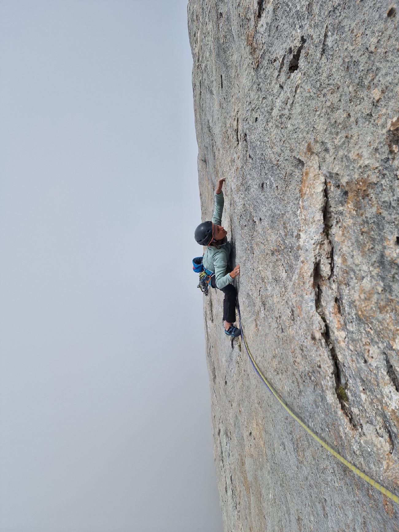 Iris Bielli in apertura su 'Madre Roccia' in Marmolada (Iris Bielli, Matteo Della Bordella, Massimo Faletti, Maurizio Giordani 2022-2023)