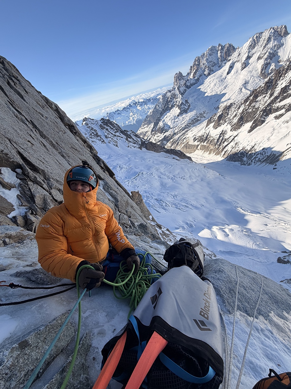 Il secondo giorno dell'apertura di 'Jorassique Pâques' alla parete nord delle Grandes Jorasses (Pierre Girot, Kilian Moni, Hugo Peruzzo, Arthur Poindefert 3-6/04/2026)