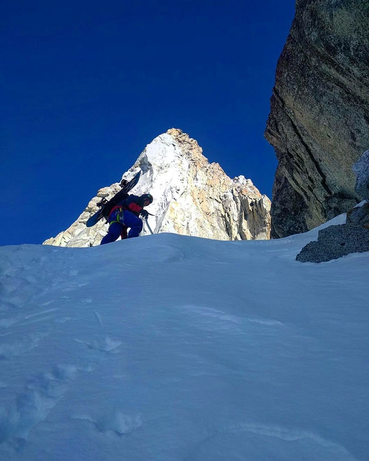 Julien Herry in salita su Les Drus per scendere il Triple Couloir con Laurent Bibollet