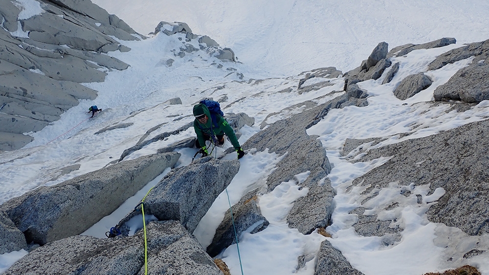 Monte Nero di Presanella: Francesco Rigon salendo il 1° tiro della via Illogika