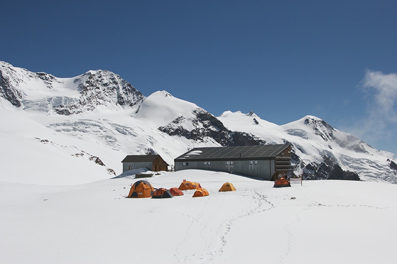 Il Campo dell'High-lab Ferrino al Rifugio Quintino Sella al Felik, quota 3585m sul Monte Rosa