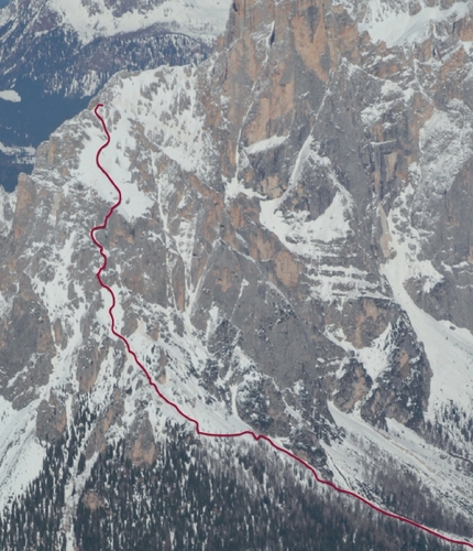 La descrizione della prima discesa effettuata con gli sci , il 15 maggio 2013, da Francesco Vascellari e Loris De Barba dalla cima del Monte Pelmetto in Dolomiti.