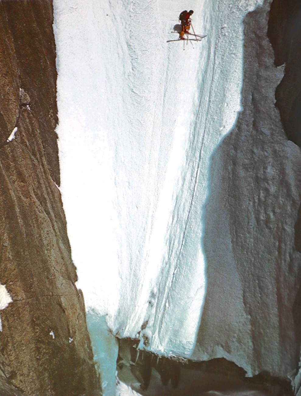 Jean Marc Boivin sulla sud di Dru il 17 aprile 1987, tratto dal libro 'No fall Lines' di Giorgio Daidola