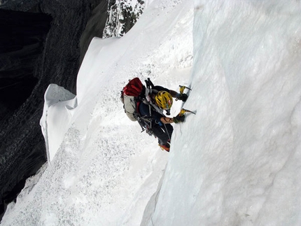 Ginat sulle Droites, Ueli Steck solo in video A gennaio 2010 Ueli Steck ha salito in solitaria la via Ginat (ED,V, M4+, 85°, 1000m) sulla parete nord delle Droites in 2:08. Ecco il video e l'intervista al protagonista.
