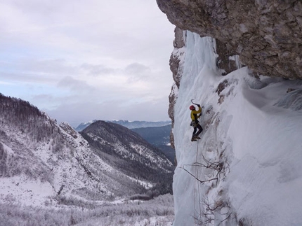 Presolana centrale parete sud, via Koren e Nossesi Dopo aver aperto la via Koren assieme a Dario Nani, Davide Rottigni propone un'abbinata classico moderno sul calcare lunare della Presolana: la Koren seguita dalla via Nossesi.