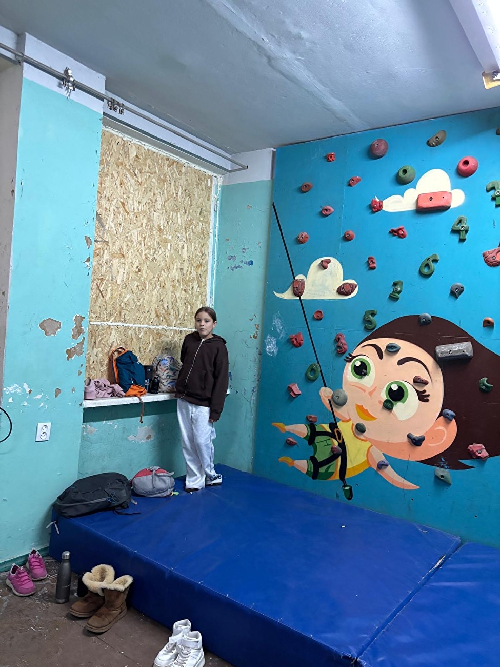 La palestra d'arrampicata Vertical a Kharkiv in Ucraina. Finestre chiuse, no vetri