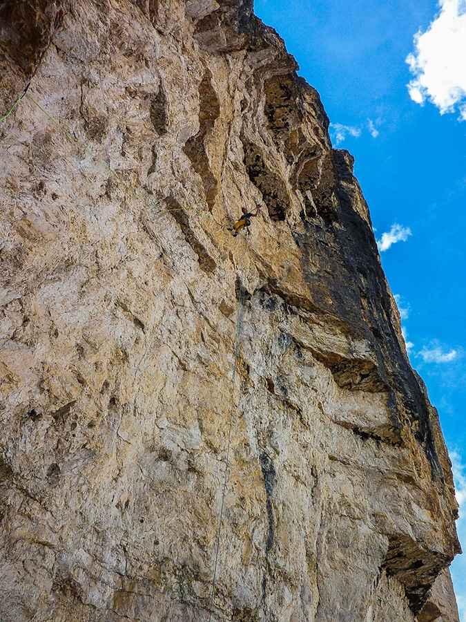 Durante la prima salita di Petri Heil, Cima Ovest di Lavaredo, Dolomiti (Hannes Pfeifhofer, Dietmar Niederbrunner 2016)