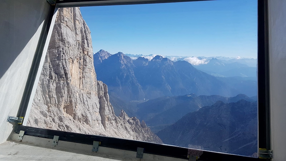 La vista dal nuovo Bivacco Fanton a Forcella Marmarole, Dolomiti, settembre 2020
