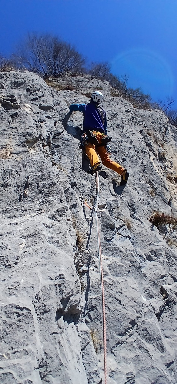 Ivo Ferrari sulla via 'Spirito Baldense' agli Spalti di Pratovecchio in Val d'Adige.