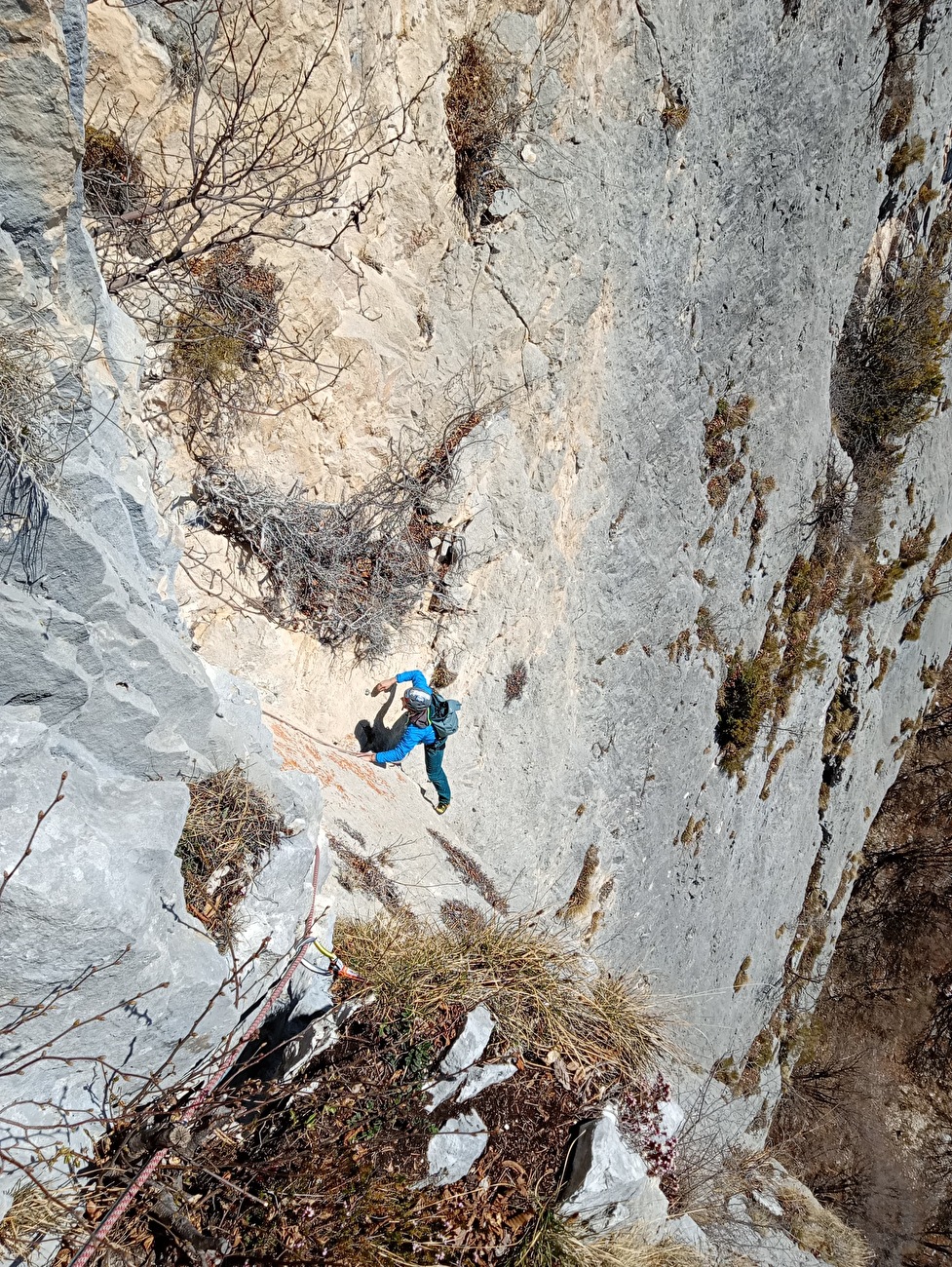 Flavio Leoni sulla via 'Spirito Baldense' agli Spalti di Pratovecchio in Val d'Adige.