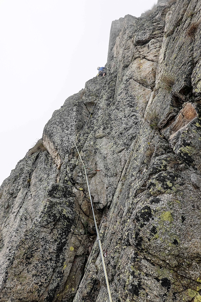 Settima lunghezza via Angelino, Monte Mucrone, Alpi Biellesi. Il secondo sulla Parete Sospesa